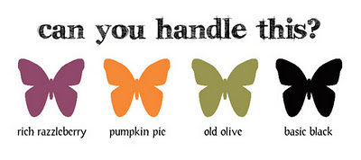 My friend Christina has been using these adorable little stamps that she found in the Michael's dollar bin, so when I was there the other day, I had to check it out! They didn't have the exact ones she has been using, but they did have these 3 little guys. I just couldn't resist! The cardstock is all SU and the paper with the text is from Making Memories. This card is for my niece, Autumn, for her very first Halloween! Unfortunately I'm too late to link up for the Color Throwdown challenge, but the colors still turned out nicely together :)